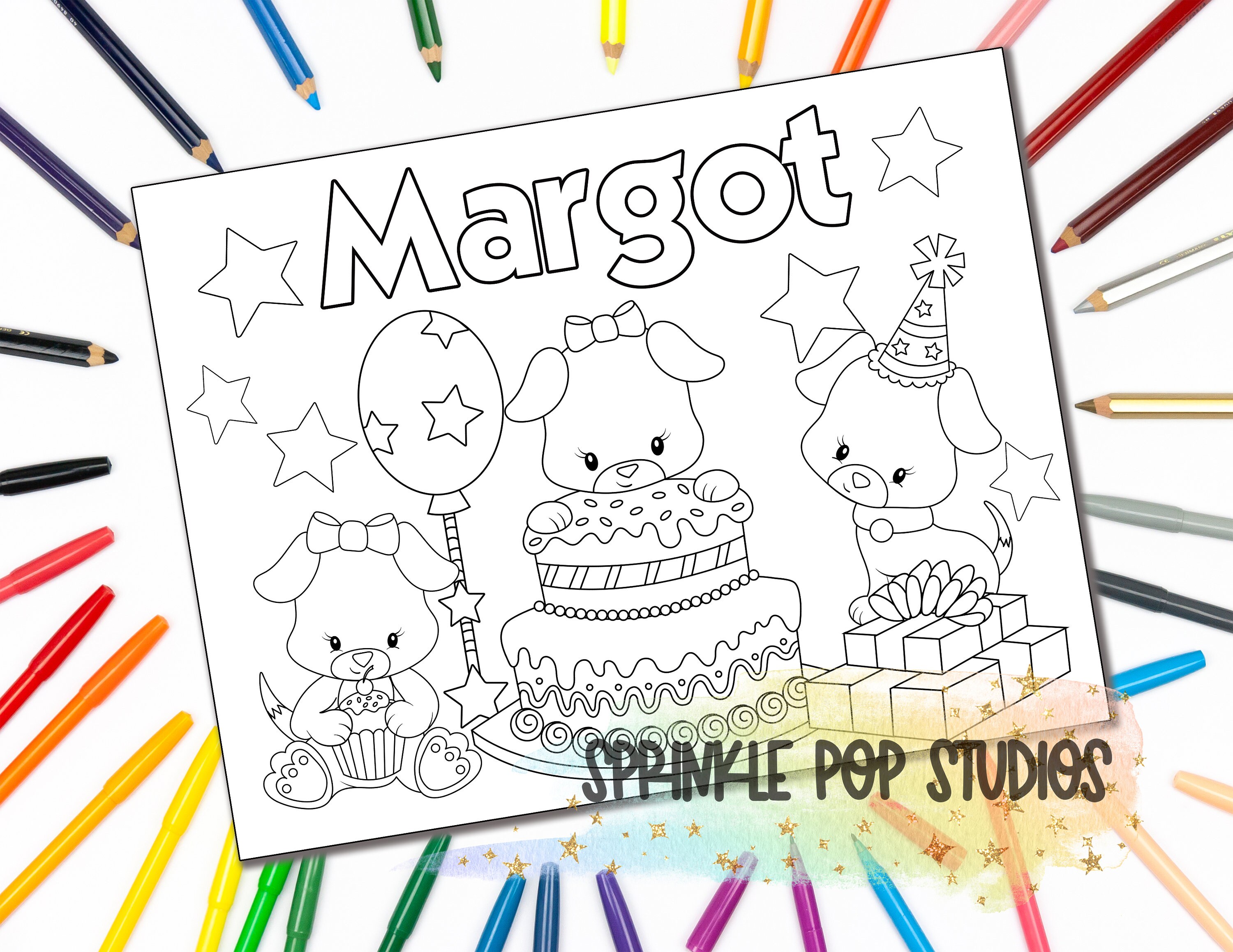 Personalized Coloring Page ~ Birthday Puppy ~ Custom Coloring Book Page with Name ~ Digital Download ~ Coloring Pages for Kids